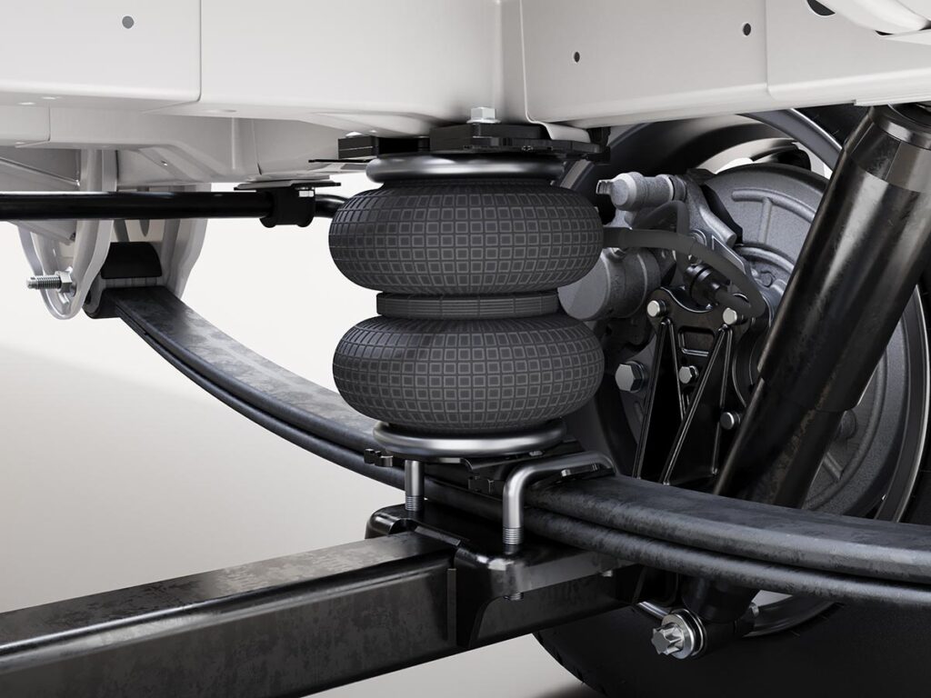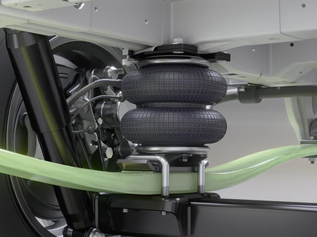 Das Comfort-Paket richtet sich an Anwender, die besonderen Wert auf eine hochwertige und zugleich ausgewogene Fahrwerksabstimmung legen. Hierbei ersetzen leichte, hoch belastbare GFK-Blattfedern die serienmäßigen Stahlblattfedern und kombinieren sich mit einer leistungsstarken Zusatzluftfederung. Dieses System – unter der Bezeichnung RouteComfort geführt – erzeugt ein besonders sensibles, komfortorientiertes Federungsverhalten bei gleichzeitig hoher Stabilität. Wie beim Smart-Paket kommt eine 2‑Kreis-Luftfederung mit großvolumigen 8‑Zoll-Luftbälgen zum Einsatz, die eine feinstufige Regulierung ermöglicht. Damit stellt das Comfort-Paket die umfassendste Lösung dar, wenn Komfort, Kontrolle und Fahrqualität im Vordergrund stehen.