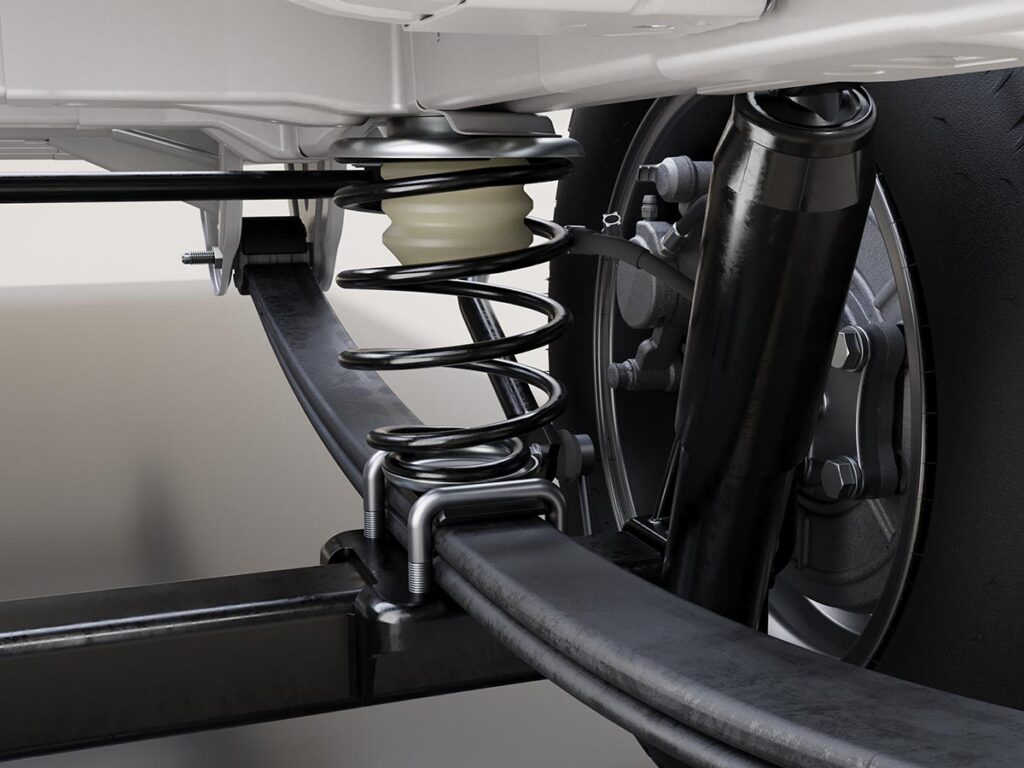 Das Basic-Paket richtet sich an Nutzer, die eine einfache, wirkungsvolle Lösung zur Stabilisierung ihres Fahrzeugs suchen. Die an der Hinterachse verbauten Zusatzschraubenfedern entlasten die serienmäßigen Blattfedern und sorgen für ein harmonischeres, ausgewogeneres Fahrverhalten. Diese robuste, wartungsfreie Ergänzung verbessert das Federungsverhalten spürbar, besonders bei überlasteten Fahrzeugen oder häufig wechselnder Beladung, und stellt gleichzeitig ein stabiles Fahrniveau sicher, das sowohl Alltagssituationen als auch längeren Reisen zugutekommt. Zusammen mit den Komfortfederbeinen an der Vorderachse bietet das Basic-Paket so einen verlässlichen Einstieg in die gezielte Fahrwerksoptimierung.