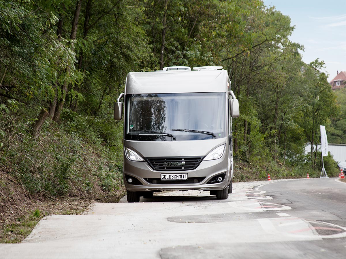 Seit 2018 ist das Test Center der Erwin Hymer Group am Goldschmitt Standort in Höpfingen angesiedelt. Hier werden Reisemobile, Camper Vans und Caravans unter realistischen und extremen Bedingungen geprüft – mit dem klaren Ziel, Sicherheit, Fahrstabilität und Dauerhaltbarkeit auf höchstem Niveau sicherzustellen. Im Fokus stehen umfangreiche Fahrdynamik- und Belastungstests auf der speziell angelegten Schlechtwegstrecke, die innerhalb kürzester Zeit ein komplettes Fahrzeugleben simuliert. Ergänzend dazu werden einzelne Komponenten intensiv auf Funktion, Belastbarkeit und Beständigkeit geprüft. In enger Zusammenarbeit mit externen Partnern und Lieferanten werden Materialien und Konstruktionen kontinuierlich weiterentwickelt – für dauerhaft bewährte Standards in Technik und Sicherheit.